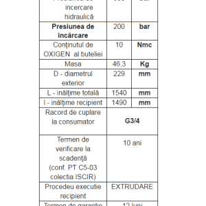 La cerere, buteliile pot fi livrate încărcate cu oxigen medical, însă acest aspect se stabilește de comun acord înainte de livrare.
