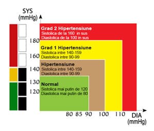 CLASIFICAREA OMS Producatorul a introdus clasificarea tensiunilor conform cu Organizatia Mondiala a Sanatatii (OMS). Astfel, chiar daca nu stim care ar trebui sa fie tensiunea normala, aparatul ne va indica. Culoarea verde indica valori in limitele normale, culoarea galbena ne avertizeaza asupra unei cresteri/scaderi mici fata de nivelul normal iar culoarea rosie ne avertizeaza asupra unor diferente substantiale.